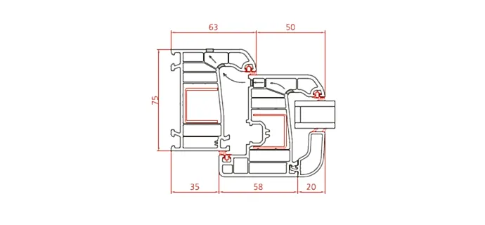 - 6 odacıklı kasa ve kanat profilleri ile mükemmel ısı yalıtımı sağlar.